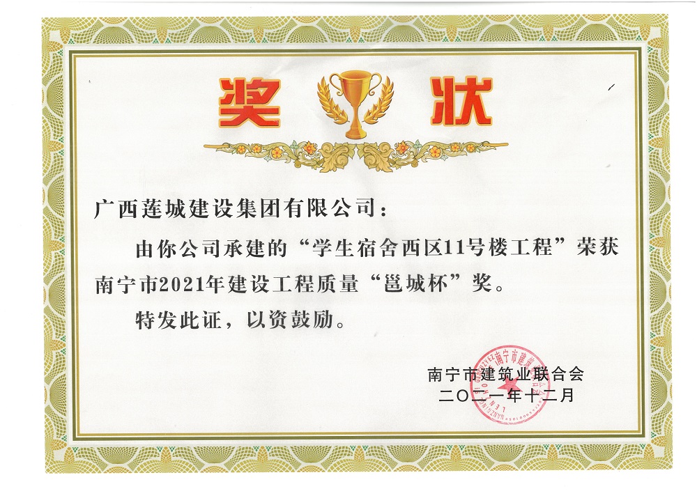 2021年贵港市建设工程优质结构奖莲城大厦工程,项目经理:姜雄雁