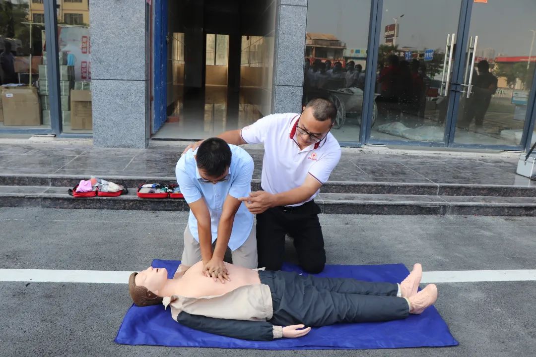 本次活动分为两个阶段。第一阶段,港南区红十字会对公司全员进行应急救护技能培训。实操过程中,老师一边念着“口诀”,一边通过“模拟人”向大家演示心肺复苏术、人工呼吸法等紧急救护技术,提醒大家要根据被救者的实际情况进行施救,避免造成“二次伤害”。现场的员工认真聆听,并积极参与到心肺复苏术实操演练中,有不规范的动作老师立即手把手进行了指导和纠正。