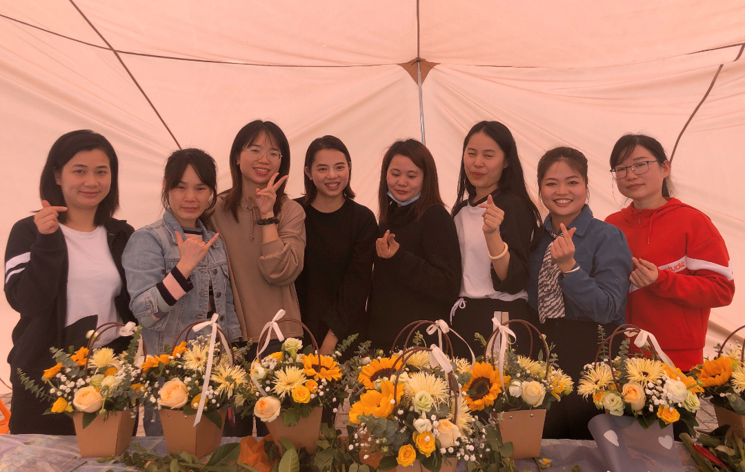 在花艺沙龙主题活动中,女同事们用灵巧的双手,根据鲜花不同的颜色,高低错落搭配在一起,创造出一个个独具匠心,极富艺术感的花艺作品。