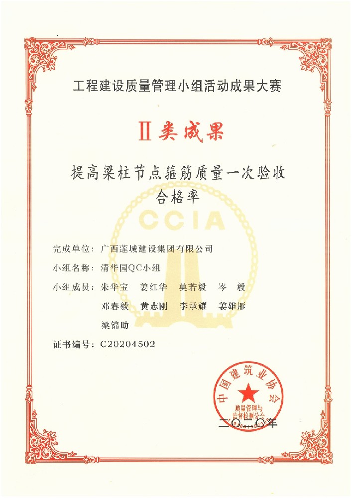 2020年工程建设质量管理小组活动成果大赛QC小组